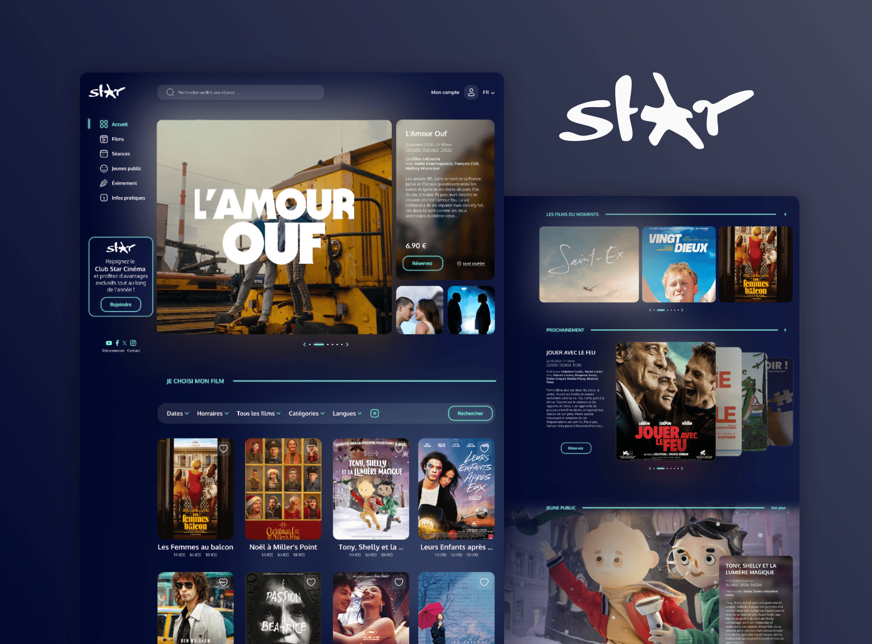 This project is a web redesign concept for Cinéma Star, an independent art-house cinema in Strasbourg, aiming to modernize its digital presence and attract a broader audience. The proposal focuses on improving usability, readability, and visual appeal while preserving the cinema’s cultural and independent identity through a contemporary interface inspired by streaming platforms.